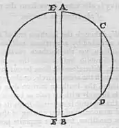 * But if the portions have been taken away from the side C D, the poles and axis will not be in the line A B, but in E F, and the axis would be changed in the same proportion as the æquator in the former figure. For those positions of forces and virtues, or rather limits of the virtues, which are derived from the whole form, are moved forward by change of quantity and shape; since all these limits arise from the conspiring together of the whole and of all the parts united; and the verticity or the pole is not a virtue innate in one part, or in some definite limit, or fixed in the substance; but it is an inclination of the virtue to that part. And just as a terrella separated from the earth has no longer the earth's poles and æquator, but individual ones of its own; so also if it again be divided, those limits and distinctions of the qualities and virtues pass on to other parts. But if a loadstone be divided in any way, either along a parallel, or meridionally, so that by the change of shape either the poles or the æquator move to other positions, if the part cut off be merely applied in its natural position and joined to the whole, even without any agglutination or cementing together, the determining points of the virtues return again to their former sites, as if no part of the body had been cut off. When a body is entire, its form remains entire; but when the body is lessened, a new whole is made, and there arises a new entirety, determined for every loadstone, however small, even for magnetick gravel, and for the finest sand.