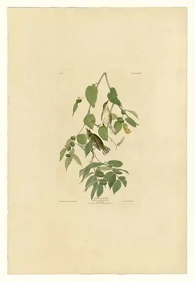 I have represented a pair of these plain-looking Warblers on a twig of the Canoe Birch, a tree too well known, from the use to which its bark is applied by the Indians in the construction of their light and beautiful boats, to require any particular description here.