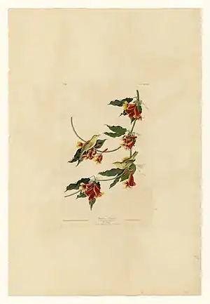 The Bignonia on which they are represented, grows abundantly in the low alluvial grounds of the States of Mississippi and Louisiana, sparingly in Tennessee, and about the mouth of the Ohio. It twines round the trunks of various trees, and produces beautiful flowers, in which Humming Birds are frequently seen to search for the minute insects which form their food. They are destitute of smell, but are seen both during spring and autumn.