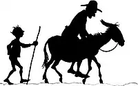 while the boy trudged along behind. They had not gone far when they overtook a party of women and children, and the Miller heard them say, “What a selfish old man! He himself rides in comfort, but lets his poor little boy follow as best he can on his own legs!” So he made his Son get up behind him. Further along the road they met some travellers, who asked the Miller whether the Ass he was riding was his own property, or a beast hired for the occasion. He replied that