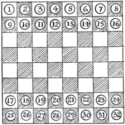 of your chessboard. I have shown numbered counters in the illustration so as to make the
