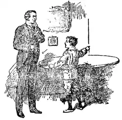 A Boy, recently home from school, wished to give his father an exhibition of his precocity. He pushed a large circular table into the corner of the room, as shown in the illustration, so that it touched both walls, and he then pointed to a spot of ink on the extreme edge.