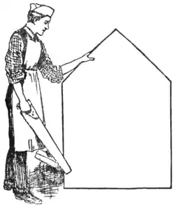 A joiner had two pieces of wood of the shapes and relative proportions shown in the diagram. He wished to cut them into as few pieces as possible so that they could be fitted together, without waste, to form a perfectly square table-top. How should he have done it? There is no necessity to give measurements, for if the smaller piece (which is half a square) be made a little too large or a little too small it will not affect the method of solution.