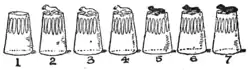 Our six educated frogs have learnt a new and pretty feat. When placed on glass tumblers, as shown in the illustration, they change sides so that the three black ones are to the left and the white frogs to the right, with the unoccupied tumbler at the opposite end—No. 7. They can jump to the next tumbler (if unoccupied), or over one, or two, frogs to an unoccupied