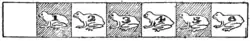 The six educated frogs in the illustration are trained to reverse their order, so that their numbers shall read 6, 5, 4, 3, 2, 1, with the blank square in its present position. They can jump to the next square (if vacant) or leap over one frog to the next square beyond (if vacant), just as we move in the game of draughts, and can go backwards or forwards at pleasure. Can you show how they perform their feat in the fewest possible moves? It is quite easy, so when you have done it add a seventh frog to the right and try again. Then add more frogs until you are able to give the shortest solution for any number. For it can always be done, with that single vacant square, no matter how many frogs there are.