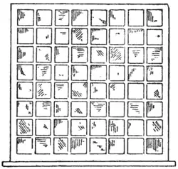 "Dost thou not see that the sixty-four lights add up an even number vertically and horizontally, but that all the diagonal lines, except fourteen are of a number that is odd? Why is this?"
