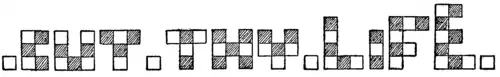 I once set myself the amusing task of so dissecting an ordinary chessboard into letters of the alphabet that they would form a complete sentence. It will be seen from the illustration that the pieces assembled give the sentence, "CUT THY LIFE," with the stops between." The ideal sentence would, of course, have only