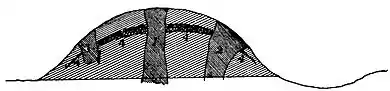 FIG.4.Mound No.5 looking north; 1, 2, 3 shafts:4, 4, 4 charcoal and ashes.