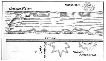 earthwork on a hill, now destroyed. A long wall, separating the bill from a marsh on the east, still remains. Arrow-heads of flint, en caché, have been plowed up.