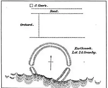 2. The remains of a circular earthwork on Mr. J. T. Geer's farm, lot 24, Granby, east of the railroad station, are in very good preservation,