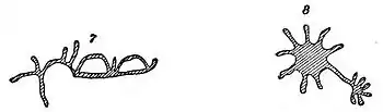 Fig. 8 is a rayed character with a circular body chiseled out to the depth of the rays, viz, one-fourth inch. The body of this figure is 4½