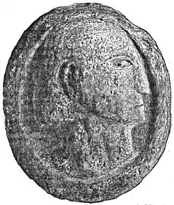 and was examined by a number of persons possessing respectable scientific attainments. As far as I am aware, however, neither its visible characteristics, nor its history, or its historical associations have ever been carefully studied by any conversant with American archæology. This carved stone was found at the point marked a in the accompanying map. For myself, while undertaking to comment upon this interesting memento of a past age, I must at the outset acknowledge my want of qualifications for the purpose, and explain that my object is rather to suggest than to dogmatize, and to give such small assistance to the learned as is comprised in scraps of information which I have been able to obtain from various sources.