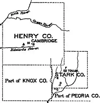 In the northeast of Henry County, at a point marked G, are immense sand-hills and swamps. The mound-builders evidently made this a rendezvous for game and fish, the sand-banks abounding in all kinds of relics. This is the Winnebago swamp, and scattered through it are many evidences of ancient inhabitants.