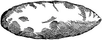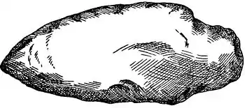stone, of grayish color streaked with white; a flinty formation occurring in all lead-bearing strata of Illinois, and identical with the cherty nodules and seams very common in the sub-carboniferous outcrops of the upper Mississippi and southwest Missouri. They had been buried new, showing no marks of having been used, and their peculiar style of workmanship and similarity of design leave but little doubt that they are the product of the same artisan. The exceptional one in the deposit is a well-proportioned and perfect spear point, nearly 3 inches in length, neatly chipped from opaque, milk-white flint, strongly contrasting in material, shape, and finish with the others, and evidently manufactured by some other hand, perhaps in a different and remote workshop.
