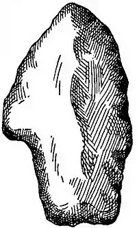 It has been gravely suggested that implements of this form were so made, and intended for use, exclusively for spearing and shooting fish, on the hypothesis that the greater weight of one side of the flint, or its irregular form, would give the shaft to which it was attached, when launched, a curved direction, thereby overcoming the water's refraction of the solar rays, and cause the weapon to strike the real and not the apparent position of the fish aimed at.