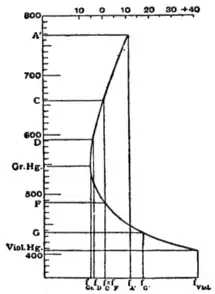 | A′ | C | D | Green Hg. | F | G′ | Violet Hg. |