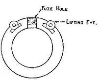 Explosive shells do not appear to have been in general use before the middle of the 16th century. About that time hollow balls of stone or cast iron were fired from mortars. The balls were nearly filled with gunpowder and the remaining space with a slow-burning composition. This plan was Shell.unsatisfactory, as the composition was not always ignited by the flash from the discharge of the gun, and moreover the amount of composition to burn a stipulated time could not easily be gauged. The shell was, therefore, fitted with a hollow forged iron or copper plug, filled with slow-burning powder. It was impossible to ignite with certainty this primitive fuze simply by firing the gun; the fuze was consequently first ignited and the gun fired immediately afterwards. This entailed the use of a mortar or a very short piece, so that the fuze could be easily reached from the muzzle without unduly endangering the gunner. Cast-iron spherical common shell (fig. 4) were in use up to 1871. For guns they were latterly fitted with a wooden disc called a sabot, attached by a copper rivet, intended to keep the fuze central when loading. They were also supposed to reduce the rebounding tendency of the shell as it travelled along the bore on discharge. Mortar shell (fig. 5) were not fitted with sabots.