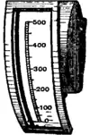 Switchboard Ammeters.—For switchboard use in electric supply stations where space is valuable, instruments of the type called edgewise ammeters are much employed. In these the indicating needle moves over a graduated cylindrically shaped scale, and they are for the most part electromagnetic instruments (see fig. 9).
