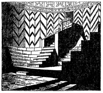 The cathedral on the island of Torcello near Venice, originally built in the 7th century, but largely repaired c. A.D. 1000, deserves special attention from the fact that it preserves, in a more perfect state than can be seen elsewhere, the arrangements of the seats in the apse (fig. 18). The bishop’s throne occupies the centre of the arc, approached by a steep flight of steps. Six rows of stone benches for the presbyters, rising one above another like the seats in a theatre, follow the curve on either side—the whole being singularly plain and almost rude. The altar stands on a platform; the sanctuary is divided from the nave by a screen of six pillars. The walls of the apse are inlaid with plates of marble. The church is 125 ft. by 75 ft. The narrow aisles are only 7 ft. in width.
