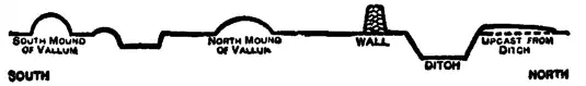 The meaning of the vallum is much more doubtful. John Hodgson and Bruce, the local authorities of the 19th century, supposed that it was erected to defend the wall from southern insurgents. Others have ascribed it to Agricola, or have thought it to be the wall of Hadrian, or even assigned it to pre-Roman natives. The two facts that are clear about it are, that it is a Roman work, no older than Hadrian (if so old), and that it was not intended, like the wall, for military defence. Probably it is contemporaneous with either the turf wall or the stone wall, and marked some limit of the civil province of Britain. Beyond this we cannot at present go.