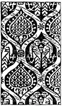 | Fig. 2.—Part of a Siculo-Saracenic brocade woven in the 12th century. 1612 in. wide. |