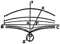 that O is a conjugate point (curve 3). The curve is symmetrical
