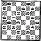 Problem No. 1 is the simplest form of that known to draughts-players as the “First Position.” It is of more frequent occurrence in actual play than any other end-game, and is, besides, typical of a class of draughts problems which may be described as analytical, in contradistinction to “strokes.”