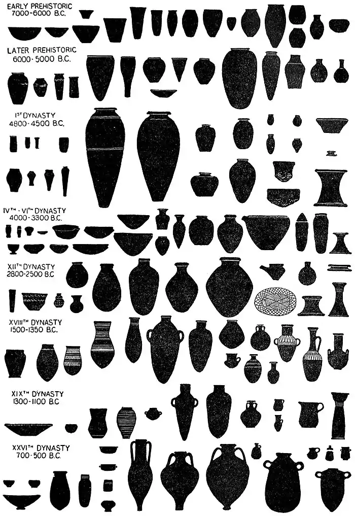 Fig. 112.—Principal Types of Pottery of Ancient Egypt. (Scale 1 : 20.)