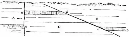 - ↑ The fault-plane is not a plane surface in the mathematical sense; it may curve irregularly in more than one direction.