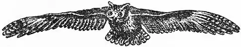 | Fig. 19.—The Cape Barn-owl (Strix capensis), showing the kite-like surfaces presented by the ventral aspect of the wings and body in flight. |
