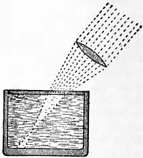 FLUORESCENCE. In a paper read before the Royal Society of Edinburgh in 1833, Sir David Brewster described a remarkable phenomenon he had discovered to which he gave the name of “internal dispersion.” On admitting a beam of sunlight, condensed by a lens, into a solution of chlorophyll, the green colouring matter of leaves (see fig. 1), he was surprised to find that the path of the rays within the fluid was marked by a bright light of a blood-red colour, strangely contrasting with the beautiful green of the fluid when seen in moderate thickness. Brewster afterwards observed the same phenomenon in various vegetable solutions and essential oils, and in some solids, amongst which was fluor-spar. He believed this effect to be due to coloured particles held in suspension. A few years later, Sir John Herschel independently discovered that if a solution of quinine sulphate, which, viewed by transmitted light, appears colourless and transparent like water, were illuminated by a beam of ordinary daylight, a peculiar blue colour was seen in a thin stratum of the fluid adjacent to the surface by which the light entered. The blue light was unpolarized and passed freely through many inches of the fluid. The incident beam, after having passed through the stratum from which the blue light came, was not sensibly enfeebled or coloured, but yet it had lost the power of