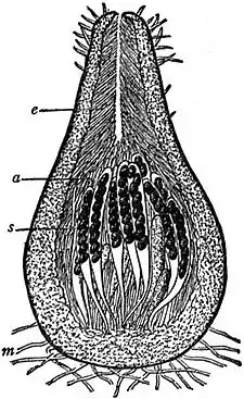 Diagrammatic section of the fructification. (After Janczewski.) m, Mycelium. |
