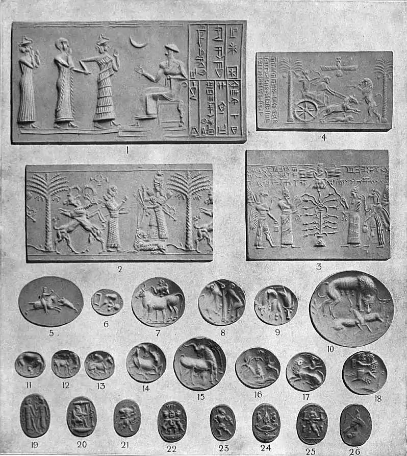 2. Assyrian Cylinder. Woman adoring Goddess.