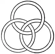 Tait starts with the almost self-evident proposition that, if any plane closed curve have double points only, in passing continuously along the curve from one of these to the same again an even number of double points has been passed through. Hence the crossings may be taken alternately over and under. On this he bases a scheme for the representation of knots of every kind, and employs it to find all the distinct forms of knots which have, in their simplest projections, 3, 4, 5, 6 and 7 crossings only. Their numbers are shown to be 1, 1, 2, 4 and 8. The unique knot of three crossings has been already given as drawn by Listing. The unique knot of four crossings merits a few words, because its properties lead to a very singular conclusion. It can be deformed into any of the four forms—figs. 51 and 52 and their perversions. Knots which can be deformed into their own perversion Tait calls “amphicheiral” (from the Greek ἀμφί, on both sides, around, χείρ, hand), and he has shown that there is at least one knot of this kind for every even number of crossings. He shows also that “links” (in which two endless physical lines are linked together) possess a similar property; and he then points out that there is a third mode of making a complex figure of endless physical lines, without either knotting or linking. This may be called “lacing” or “locking.” Its nature is obvious from fig. 53, in which it will be seen that no one of the three lines is knotted, no two are linked, and yet the three are inseparably fastened together.