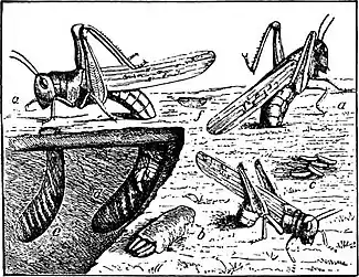| Fig. 4.—Rocky Mountain Locust (Caloptenus spretus). (After Riley.) | ||||||||||
