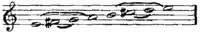 We may regard the Olympus scale, however, as consisting of two tetrachords, eliding one interval in each, for the tetrachord, or series of four notes, was very early adopted as the fundamental principle of Greek music, and its origin in the lyre itself appears sure. The basis of the tetrachord is the employment of the thumb and first three fingers of the left hand to twang as many strings, the little finger not being used on account of natural weakness. As a succession of three whole tones would form the disagreeable and untunable interval of a tritonus, two whole tones and a half-tone were tuned, fixing the tetrachord in the consonant interval of the perfect fourth. This succession of four notes being in the grasp of the hand was called συλλαβή, just as in language a group of letters incapable of further reduction is called syllable. In the combination of two syllables or tetrachords the modern diatonic scales resemble the Greek so-called disjunct scale, but the Greeks knew nothing of our categorical distinctions of major and minor. We might call the octave Greek scale minor, according to our descending minor form, were not the keynote in the middle the thumb note of the deeper tetrachord. The upper tetrachord, whether starting from the keynote (conjunct) or from the note above (disjunct), was of exactly the same form as the lower, the position of the semitones being identical. The semitone was a limma (λεῖμμα), rather less than the semitone of our modern equal temperament, the Greeks tuning both the whole tones in the tetrachord by the same ratio of 8:9, which made the major third a dissonance, or rather would have done so had they combined them in what we call harmony. In melodious sequence the Greek tetrachord is decidedly more agreeable to the ear than the corresponding series of our equal temperament. And although our scales are derived from combined tetrachords, in any system of tuning that we employ, be it just, mean-tone, or equal, they are less logical than the conjunct or disjunct systems accepted by the Greeks. But modern harmony is not compatible with them, and could not have arisen on the Greek melodic lines.