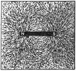 Some of the principal phenomena of magnetism may be demonstrated with very little apparatus; much may be done with a small bar-magnet, a pocket compass and a few ounces of iron filings. Steel articles, such as knitting or sewing needles and pieces of flat spring, may be readily magnetized by stroking them with the bar-magnet; after having produced magnetism in any number of other bodies, the magnet will have lost nothing of its own virtue. The compass needle is a little steel magnet balanced upon a pivot; one end of the needle, which always bears a distinguishing mark, points approximately, but not in general exactly, to the north,[1] the vertical plane through the direction of the needle being termed the magnetic meridian. The bar-magnet, if suspended horizontally in a paper stirrup by a thread of unspun silk, will also come to rest in the magnetic meridian with its marked end pointing northwards. The north-seeking end of a magnet is in English-speaking countries called the north pole and the other end the south pole; in France the names are interchanged. If one pole of the bar-magnet is brought near the compass, it will attract the opposite pole of the compass-needle; and the magnetic action will not be sensibly affected by the interposition between the bar and the compass of any substance whatever except iron or other magnetizable metal. The poles of a piece of magnetized steel may be at once distinguished if the two ends are successively presented to the compass; that end which attracts the south pole of the compass needle (and is therefore north) may be marked for easy identification.