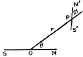 where θ is the angle between the axis of the magnet and the direction of the force. In fig. 4 S′N′ is a small magnet of moment M′, and SN a distant fixed magnet of moment M; the axes of SN and S′N′ make angles of θ and φ respectively with the line through their middle points. It can be deduced from (17), (12) and (13) that the couple on S′N′ due to SN, and tending to increase φ, is