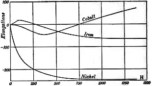 - ↑ Principal publications: J. P. Joule, Scientific Papers, pp. 46, 235; A. M. Meyer, Phil. Mag., 1873, 46, 177; W. F. Barrett, Nature, 1882, 26, 585; S. Bidwell, Phil. Trans., 1888, 179A, 205; Proc. Roy. Soc., 1886, 40, 109 and 257; 1888, 43, 406; 1890, 47, 469; 1892, 51, 495; 1894, 55, 228; 1894, 56, 94; 1904, 74, 60; Nature, 1899, 60, 222; M. Cantone, Mem. d. Acc d. Lincei, 1889, 6, 487; Rend. d. Acc. d. Lincei, 1890, 6, 252; A. Berget, C.R., 1892, 115, 722; S. J. Lochner, Phil. Mag., 1893, 36, 498; H. Nagaoka, Phil. Mag., 1894, 37, 131; Wied. Ann., 1894, 53, 487; C. G. Knott, Proc. Roy. Soc. Ed., 1891, 18, 315; Phil. Mag., 1894, 37, 141; Trans. Roy. Soc. Ed., 1896, 38, 527; 1898, 39, 457; C. G. Knott and A. Shand, Proc. Roy. Soc. Ed., 1892, 19, 85 and 249; 1894, 20, 295; L. T. More, Phil. Mag., 1895, 40, 345; G. Klingenberg, Rostock Univ. Thesis, Berlin, 1897; E. T. Jones, Phil. Trans., 1897, 189A, 189; B. B. Brackett, Phys. Rev., 1897, 5, 257; H. Nagaoka and K. Honda, Phil. Mag., 1898, 46, 261; 1900, 49, 329; Journ. Coll. Sci. Tokyo, 1900, 13, 57; 1903, 19, art. 11; J. S. Stevens, Phys. Rev., 1898, 7, 19; E. Rhoads, Phys. Rev., 1898, 7, 5; Phil. Mag., 1901, 2, 463; G. A. Shakespear, Phil. Mag., 1899, 17, 539; K. Honda, Journ. Coll. Sci. Tokyo, 1900, 13, 77; L. W. Austin, Phys. Rev., 1900, 10, 180; Deutsch. Phys. Gesell. Verh., 1904, 6, 4, 211; K. Honda and S. Shimizu, Phil. Mag., 1902, 4, 338; 1905, 10, 548.