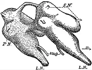Figs. 12.—The brain of a Nemertine, with its lobes and commissures. | ||||||||||