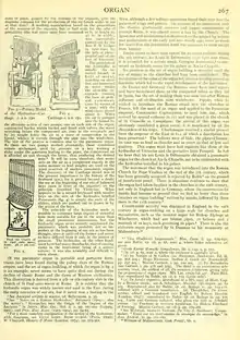 Of the pneumatic organ in portable and portative form, traces have been found during the palmy days of the Roman empire, and the art of organ-building, of which the organ in fig. 5 is an example, never seems to have quite died out during the decline of classic Rome and the dawn of Western civilization. This illustration is derived from a 4th- or 5th-century slab in the church of St Paul extra miiros at Rome. It is evident that the hydraulic organ was widely known and used in the East during the early centuries of our era, but it never won a footing in the ^ See Anonymi scriptio de musica, ed. Bellermann, p. 35. "See " Notes on a Roman Hydraulus, " Reliquary (igo4); also the writer's " Researches into the Origin of the Organs of the Ancients " in Intern. Mus. Ges., Sbd. ii. 2, pp. 167-202 (Leipzig, 1901), and Proc. Mus. Assoc. (1903-1904), pp. 54-55.