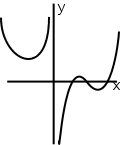 The cubic parabola (fig. 4) is a cubic curve having the equation . It consists of two parabolic branches tending in opposite directions. John Wallis utilized the intersections of this curve with a right line to solve cubic equations, and Edmund Halley solved sextic equations with the aid of a circle.