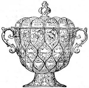 Fig. 19.—Covered Cup of Solid Gold, 6 in. high, c. 1660-1670. Given to Exeter College, Oxford, by George Hall, Bishop of Chester.