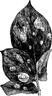 but this attack usually comes earlier in the season than the foregoing. It is characterized by the curling of the leaves, which later show black spots due to the production of numerous dark spores in patches on the diseased leaves. The damage is often considerable, as the crop is greatly lessened by the interference with the functions of the leaf. The parasite may be held in check by spraying with Bordeaux mixture early in the season. The fungus passes the winter on pieces of leaf, &c., left on the ground. All such refuse should be cleared up and burned. A third fungus, Cercospora concors, also forms spots on the leaves and may be kept in check by the same means.