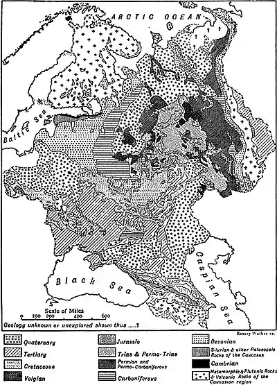 In the early part of the Palaeozoic era only the gneissic region of Finland and Olonets and probably the Archean mass of S. Russia remained constantly above the sea; but there were several oscillations. Gradually, however, the sea retreated from W. Russia and in the Upper Carboniferous and Permian periods it was confined to the E.