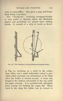 The "Heathcote" revolving newspaper-holder is very useful in libraries where the illustrated papers and periodicals are placed upon reading stands. It consists of a strip of wood, as shown