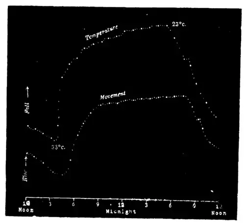Fig. 4. Record of the Sijbaria Palm from noon for 24 hours. Successive dots at intervals of 15 minutes.