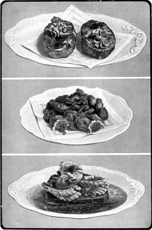 1. Salmon Cutlets. 2. Fried Oysters. 3. Skate with Butter.