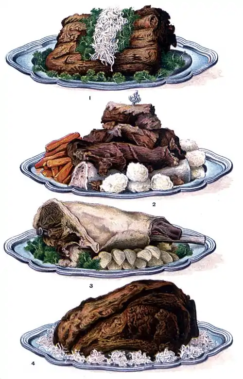 1.—Sirloin of Beef. 2.—Boiled Beef. 3.—Leg of Mutton. 4.—Roast Ribs of Beef.