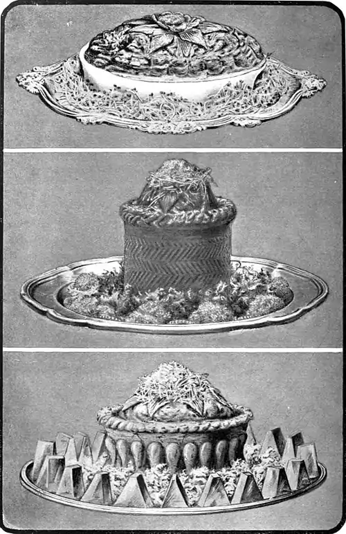 1. Pigeon Pie. 2. French Raised Pie. 3. Raised Game Pie, with Aspic Jelly.